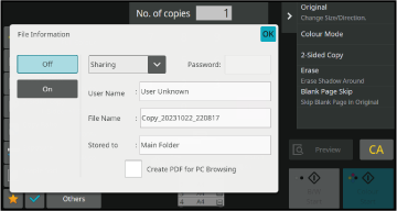 Place the original in the document feeder tray of the automatic document feeder, or on the document glass.Change to normal mode and tap [File] on the action panel to specify the file information.