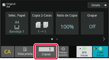 SELECCIÓN DE LA BANDEJA DE PAPEL PARA LA REALIZACIÓN DE COPIASCOPIA AUTOMÁTICA A DOS CARASSELECCIÓN AUTOMÁTICA DE PORCENTAJESALIDAMODOS DE COLOR DE COPIASSELECCIÓN DE LA ORIENTACIÓN