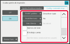 Coloque el documento original en la bandeja del alimentador de documentos automático o sobre el cristal de exposición.Pulse la tecla [Otros] y, a continuación, pulse la tecla [Imprimir textura fondo].