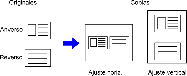 Establezca la reducción del tamaño A5 (5-1/2" x 8-1/2") al tamaño A4 (8-1/2" x 11") ![]() Cambie la configuración de la exposición. ![]() Establezca la copia a 2 caras. ![]() Establezca los márgenes. ![]() Pulse la tecla [Color Iniciar] o la tecla [B/N Iniciar]. |