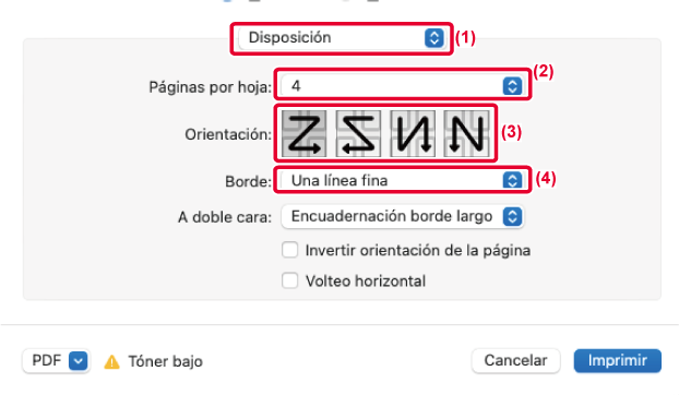 Por ejemplo, si se selecciona [2-Up] (2 páginas por
