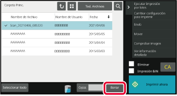 Compruebe el archivo y pulse la tecla [Borrar].