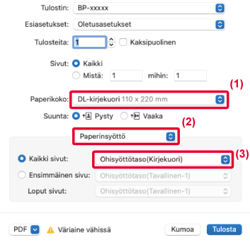 - Valitse kirjekuoren koko "Paperikoko"-valikosta.