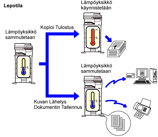 Työt, joita ei tulosteta, suoritetaan lämmitysyksikkö
