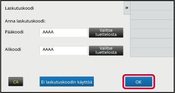 Kun laskutuskoodin syöttöikkuna näytetään, kosketa pääkoodin [Valitse luettelosta]-näppäintä.