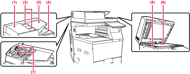 NETTOYAGE DE LA VITRE D'EXPOSITION ET DU CHARGEUR AUTOMATIQUE DE DOCUMENTS