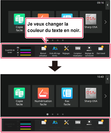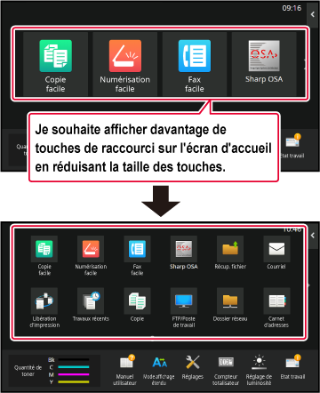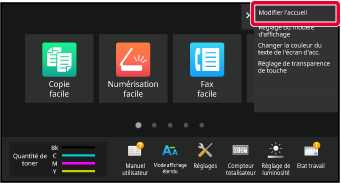 Les réglages sont enregistrés dans la machine et ils sont appliqués.Plusieurs modèles de disposition de l'écran