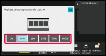 Les réglages sont enregistrés dans la machine et ils sont appliqués.Vous pouvez modifier la transparence des