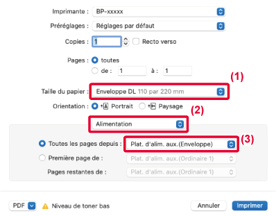 réglages [Alimentation] dans la fenêtre des réglages d'impression.