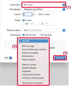 utilisé pour exécuter l'impression peut varier en fonction de l'application.