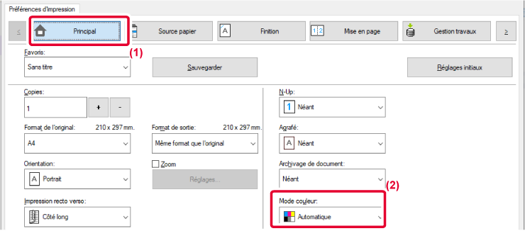 "Mode couleur" (un jeu de couleurs utilisé pour l'impression) :