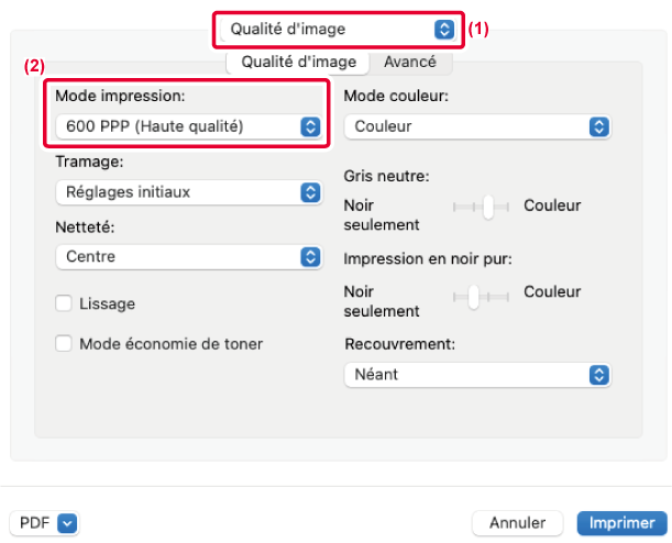 Ce mode convient à l'impression de données telles du texte normal ou un tableau. |