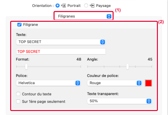 Le texte du filigrane peut être sélectionné à partir du texte