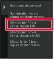 Appuyez sur la touche [Sélectionner fichier à impr. depuis FTP] du panneau de commande.