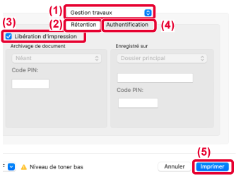 seuls les travaux d'impression de l'utilisateur connecté s'affichent.