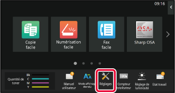 Vérifiez que le voyant d'information clignote en blanc, puis appuyez sur la touche [Réglages] de l'écran d'accueil.
