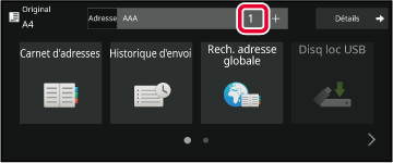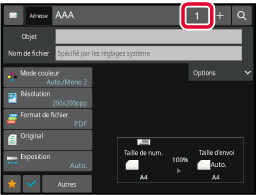 • Même si une seul destinataire est sélectionné, le nombre d'adresses apparaît quand la destination est un contact ou un groupe au sein duquel plusieurs adresses sont stockées.