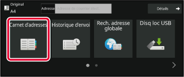 Dans l'écran initial ou l'écran du carnet d'adresses, appuyez sur la touche [Voir Carnet d'adresses mobile] du panneau de commande.