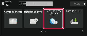 Dans l'écran initial ou l'écran du carnet d'adresses, appuyez sur la touche [Recherche adresse glob.] du panneau de commande.
