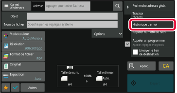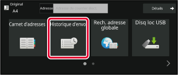 Dans l'écran initial ou l'écran du carnet d'adresses, appuyez sur la touche [Historique d'envoi] du panneau de commande.