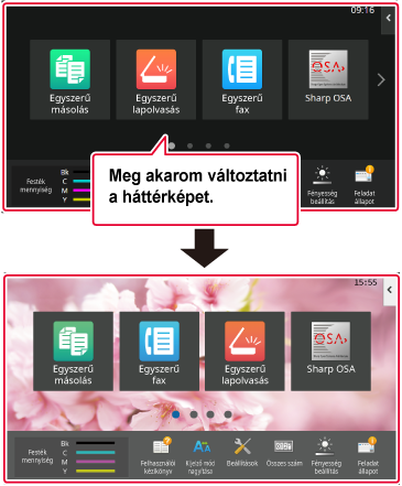 Koppintson a [Rendszer beállítások] → [Saját képernyő beállítások] → [Háttérkép] lehetőségre, majd koppintson a [Változtatás] gombra.