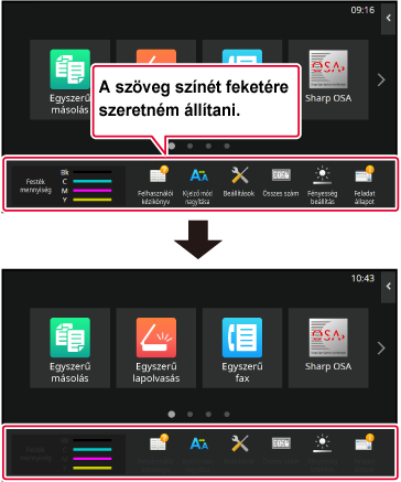 Nyissa meg a kezdő képernyőn található műveleti panelt, és koppintson a [Szövegszín módosítása az alapképernyőn] elemre.
