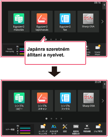 Koppintson a [Nyelv beállítás] gombra a kezdő képernyőn.