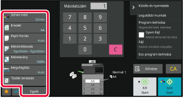 PAPÍRTÁLCA KIVÁLASZTÁSA MÁSOLÁSHOZAUTOMATIKUS KÉTOLDALAS MÁSOLÁSAUTOMATIKUS ARÁNY KIJELÖLVEKIMENETSZÍNES MÁSOLÁSI MÓDOKAZ EREDETI TÁJOLÁSÁNAK ÉS MÉRETÉNEK