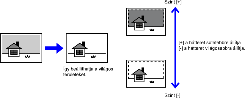 A [Háttér beállítás] menüben a [+] gombbal a hátteret sötétíti,