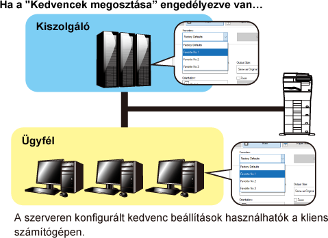és a "Kedvenc" funkció be van állítva a megosztott szerver nyomtató-illesztőprogramjában,