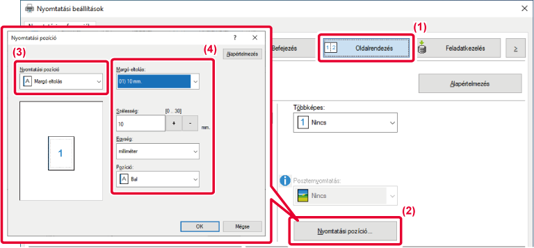 illetve tetején lévő margó méretének növelése érdekében eltolja