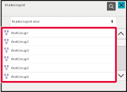Nyissa meg a hálózati mappa kezelőfelületét.A "A GÉP BEÁLLÍTÁSAINÁL MEGADOTT HÁLÓZATI MAPPÁBAN TALÁLHATÓ FÁJL NYOMTATÁSA" 3. lépésénél érintse meg a megnyitni kívánt munkacsoport gombját.