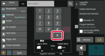 • Az [R] gomb egy érintőgomb által tárolt faxszámba is beszúrható.