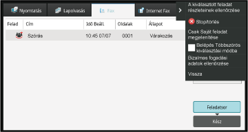 megjelennek a feladatok. A fax feladatok állapotának megerősítéséhez,