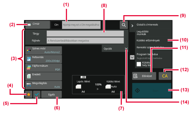 FTP-re. Az alapképernyő elrendezése a kép küldési módjától függően