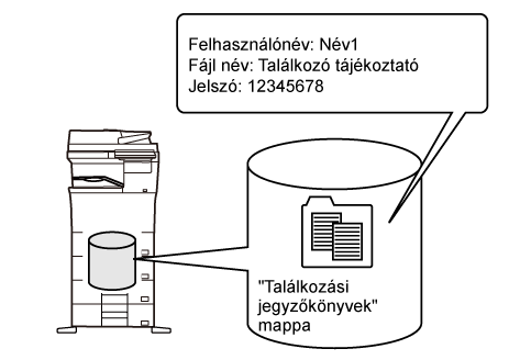Másolási, képküldési vagy más feladat végrehajtásakor ez a funkció a helyi meghajtóra menti a dokumentum adatait. A Gyorsfájl funkciótól eltérően itt a mentés során különböző típusú információk adhatók a fájlhoz, s így hatékony fájlkezelést tesz lehetővé. Jelszó is megadható. |