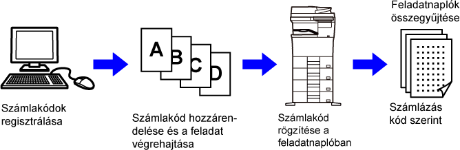 Az elvégzett nyomtatási és küldési feladatok eredményeinek a hatékony kezelés érdekében történő osztályozására szolgál. Például kódokat társíthat az ügyfelekhez, és ügyfelekre bontva gyűjtheti ki a költséginformációkat a feladatnaplókból. Példakód: "A" cég kibocsátása |