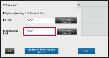 A műveleti panelen koppintson az [Számla kód megadása/szerkesztése] gombra.