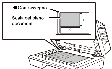 Posizionare la facciata dell'originale rivolta verso il basso con l'angolo superiore sinistro allineato all'angolo posteriore sinistro (alla punta del segno