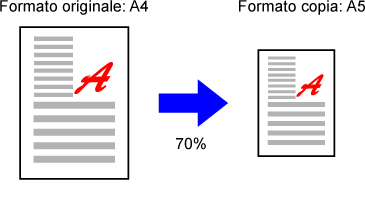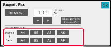 Il rapporto di riduzione o di ingrandimento viene selezionato automaticamente in base al formato dell'originale e al formato selezionato.