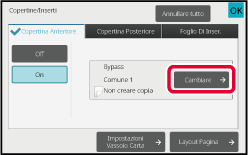 Toccare il tasto [Copertina Anteriore], quindi toccare il tasto [On].