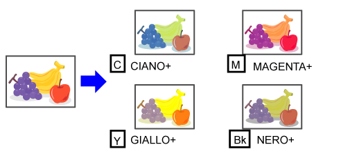 giallo, magenta, ciano e nero sono divise in tre intervalli ed è possibile