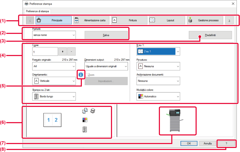 la stampa tandem e altre impostazioni di stampa dettagliate.