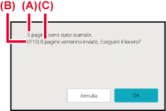 Verrà emesso un segnale acustico per indicare che la scansione e la trasmissione sono terminate.Se l'originale digitalizzato contiene pagine