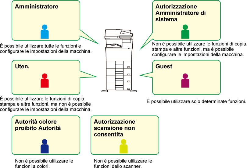 alle persone non registrate di utilizzare la macchina o alcune funzioni.