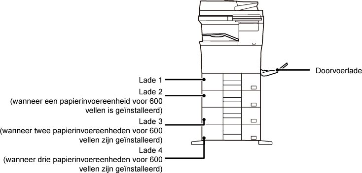 | Lade | Normale toestand | Met briefpapier of voorbedrukt papier geplaatst |
