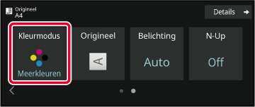 Nadat de instellingen voltooid zijn, tikt u op de toets [OK] op het scherm [2 kleuren], en controleert u of de gewijzigde instelling wordt weergegeven naast de toets [2 kleuren] in het scherm kleurenmodus.Het origineel wordt gekopieerd in elke willekeurige