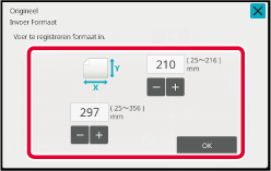 is toegevoegd. Tik, nadat u het hebt gecontroleerd op [OK].Voer stappen 1 tot 2 uit in Geef de afdrukstand en het formaat van het origineel op.