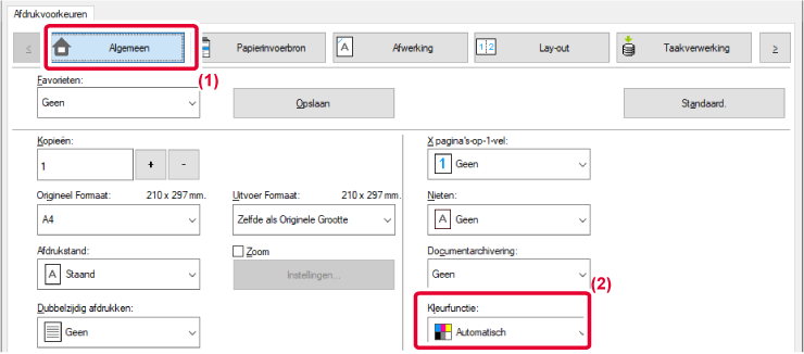 Alle pagina's worden in zwart-wit afgedrukt. Kleurgegevens, zoals afbeeldingen of materiaal voor een presentatie, worden uitsluitend met de zwarte toner afgedrukt. Met deze modus bespaart u op de kleurentoners wanneer kleurenafdrukken niet nodig zijn, zoals bij proeflezen of het controleren van de opmaak van een document. |