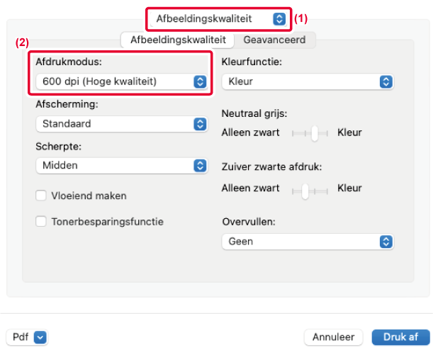 U kunt kiezen uit de volgende drie opties voor 'Printermodus'